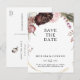 Este convite de antemão floral boho borgonha é perfeito para o seu casamento boêmio elegante de verão. Com flores modernas de rosado-água pintadas à aguarela, folhagem escura e destaques dourados, incluindo toques de peônia, borboleta e rosa desbotado, certamente completará o visual desejado.