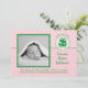 Anúncio de nascimento de ano bissexto fofo e moderno. Cartão ideal para anunciar o nascimento de um bebê no dia 29 de fevereiro. Apresenta um sapo fofo para simbolizar o ano bissexto e lê "Bebê do Ano Bissexto". Adicione uma foto colorida ou preto e branco do bebê. Os detalhes do nascimento podem ser adicionados na parte inferior. Paleta de cores rosa e verde ideal para meninas.