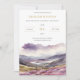 Este convite apresenta uma ilustração original de aquarela digital de um campo fictício de heather, o arbusto florido roxo que cobre as Terras Altas na Escócia.