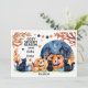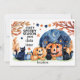 Celebre uma reunião mágica de Halloween com este convite para a temporada assustadora e aconchegante. Apresentando um canteiro de abóboras rústico, estrelas cintilantes e gatos pretos amigáveis em tons de laranja queimada, azul meia-noite e creme em aquarela. Perfeito para casamentos de outono, festas de outono ou eventos da noite de Halloween. Design de alta resolução, pronto para impressão sob demanda e personalização com os detalhes do seu evento.