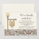 Convite de Aquecimento de Casa Rústico Divertido apresenta uma cerca de tijolos com um poste de lanterna fofo com o nome da sua família! Anuncie a todos os seus amigos e familiares que você se mudou e está pronto para uma festa de aquecimento de casa!