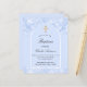 Um fundo azul claro e uma moldura em arco. Decorado com confetes azul claro. Personalize com nome e detalhes da cerimônia. Estilo de letra manuscrita elegante.