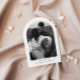 Anuncie seu dia especial com estilo atemporal com este elegante cartão de Salve a Data em forma de arco, apresentando sua foto favorita e um design minimalista refinado.
