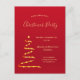 Um convite de festa de Natal moderno, simples e elegante em vermelho e dourado falso. Um clássico fundo vermelho com uma árvore de Natal moderna abstrata brilhante dourada falsa decorada com estrelas. Com o texto: Christmas Party escrito com um estilo moderno de letra à mão dourada. Modelos para as informações da sua festa.