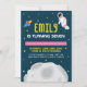 Convide amigos e familiares para um fora deste Aniversário do Espaço com este convite de aniversário com uma menina astronauta com um tom de pele escura no espaço cercado pela lua, estrelas e um ônibus espacial. Este convite tem um lado traseiro. Personalize este convite de aniversário substituindo o texto do marcador de posição no modelo para adicionar suas informações. Para obter mais opções, como alterar a fonte e seu tamanho, clique no botão "Personalizar". *Observe que a Marca d'água do Zazzle que aparece na visualização de zoom NÃO aparecerá no produto impresso final. Alguns gráficos de Prettygrafik Design (https://www.etsy.com/shop/Prettygrafikdesign). por © Rosewood e Citrus