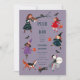 Chá de bebê de Halloween vermelho preto e roxo fofo com crianças fantasiadas de um traje de Drácula, diabo, bruxa, raposa e um gato preto