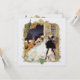 Lindo para uma festa de máscaras, ocasiões especiais, casamentos e bailes de fantasia. Seria perfeito também para cartão de "Salvar a Data". Linda dama em seu longo vestido branco em um cenário de conto de fadas que se parece com Versalhes. Eles estão dançando no salão de baile com pavões ao fundo e com moldura dourada em torno da cena. Se precisar de ajuda com personalização, entre em contato com Greer em greerdesign@aol.