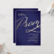Conjunto de convites de baile de formatura elegantes em dourado e azul-marinho com tipografia bonita.