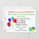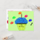 Delicioso cupcake de chocolate com cobertura azul com a aparência de confeitos coloridos, e vela vermelha e branca com chama tremeluzente colorida na frente do cartão de convite com letras que soletra FESTA escritas em confeitos coloridos em volta do cupcake. Personalize o invólucro do cupcake para QUALQUER idade 1º, 5º, 16º, ou adicione um nome! O cupcake de chocolate no verso tem cobertura azul e cupcakes de chocolate polvilhados com cobertura verde e balões de festa coloridos incluindo vermelho, verde, azul em um fundo verde claro. Arte Original por TamiraZDesigns.