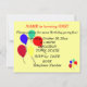Abelha bumble fofa e sorridente está zumbindo felizmente com balões coloridos em vermelho, azul, verde, amarelo e laranja na frente e no verso do cartão. Perfeito para o convite da festa de primeiro aniversário do pequeno. Design de Arte Original por TamiraZDesigns.