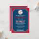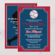 Se seu filho é um entusiasta do beisebol com sonhos de grandes ligas, então este convite de Bar Mitzvah em forma de ingresso, em vermelho, azul-marinho e branco, com um grande baseball branco e vermelho com uma Estrela de Davi azul-claro pode ser uma maneira perfeita de celebrar seu grande dia. Este convite de beisebol tem o nome do seu filho impresso em uma fonte vermelha com estilo esportivo, com seu nome hebraico em branco abaixo. Há também letras vermelhas e brancas em uma fonte com estilo de liga de beisebol para as palavras "Bar Mitzvah". O verso é vermelho, azul-marinho e branco, com uma silhueta preta de um batedor balançando um taco com texto opcional de recepção impresso em branco por cima. Exclua as palavras se você quiser usar o cartão de recepção correspondente.