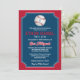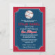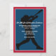 Se seu filho é um entusiasta do beisebol com sonhos de grandes ligas, então este convite de Bar Mitzvah em forma de ingresso, em vermelho, azul-marinho e branco, com um grande baseball branco e vermelho com uma Estrela de Davi azul-claro pode ser uma maneira perfeita de celebrar seu grande dia. Este convite de beisebol tem o nome do seu filho impresso em uma fonte esportiva vermelha com seu nome hebraico em branco abaixo. Há também letras vermelhas e brancas especiais em uma fonte de estilo de liga de beisebol para as palavras "Bar Mitzvah". O verso é vermelho, azul-marinho e branco com uma silhueta preta de um batedor balançando um taco com texto opcional de recepção impresso em branco por cima. Exclua as palavras ali se você quiser usar o cartão de recepção coordenado em vez disso.