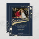 Design de passe de temporada de beisebol vintage em azul e dourado, salve a data com foto. Personalize o texto como preferir.