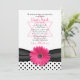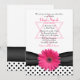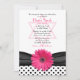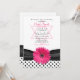Convite de Bat Mitzvah elegante, feminino, preto e branco com bolinhas, fita e gerbera margarida rosa com Estrela de Davi judaica.