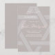 A Estrela de David é uma característica principal neste convite, pois está ousadamente no centro do design. O convite tem um layout de texto criativo com uma aparência moderna, jovem e ainda elegante