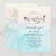 Convite de Bat Mitzvah da PixDezines com palmeiras e a praia. Água cristalina do oceano azul em costa de areia rosa. Nosso design dinâmico permite editar todos os elementos. Clique no botão "personalizar mais" para editar ou adicionar mais texto / monograma.