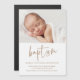 Este convite de batismo de bebê com foto moderna apresenta arte de batismo em letra cursiva manuscrita que é móvel e que você pode facilmente mudar a cor, uma foto horizontal e texto editável. Clique no botão editar para personalizar este design.