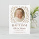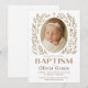 Celebre o batismo do seu pequeno com este elegante convite de batismo em estilo boho, apresentando uma paleta de cores suaves e neutras, uma foto adorável da bebê Olivia Grace e delicados enfeites de coroa de flores. Uma escolha perfeita para uma celebração de batismo chic e moderna.