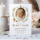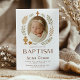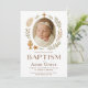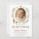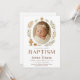 Celebre o dia especial da sua bebê com este convite de batismo em estilo boho. Com uma bebê envolta em paz, emoldurada por uma delicada cruz dourada e sotaques botânicos, este convite elegante é perfeito para a ocasião sagrada do seu pequeno. Impresso em material de alta qualidade, é um souvenir atemporal para familiares e amigos.