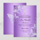 Convite de Batismo Roxo. Linda borboleta em redemoinho & desenho de cruz prateada. Personalize com seus próprios detalhes. Por favor, note que todas as imagens são planas! elas não têm renda real, laço ou jóias!