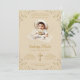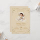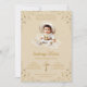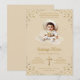 Celebre o batismo do seu filho com este encantador Convite de Batismo Charro Boy, apresentando um adorável menino vestido com um tradicional terno charro branco e dourado. O fundo bege quente, combinado com floreios dourados ornamentados e uma cruz decorativa, torna este design perfeito para um clássico bautizo católico com elegância cultural.