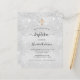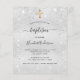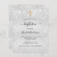 Um convite de batismo moderno, elegante e minimalista para meninos ou meninas. Fundo com aparência metálica prateada falsa decorado com purpurina falsa. Personalize e adicione um nome e detalhes. Letras pretas.
