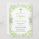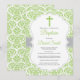 Convite de Batismo com Cruz de Damasco Verde
