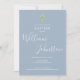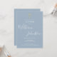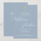 Um convite de batizado elegante com uma assinatura de nome em letra cursiva sofisticada. Personalize com as informações especiais do seu batismo em letras elegantes sobre um fundo azul poeirento e código QR e detalhes da recepção no verso. Desenhado por Thisisnotme©