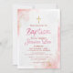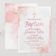 Um cartão de convite de batismo cor-de-rosa em mármore elegante para filha. Este modelo é personalizável. Para personalização adicional, vá para "Personalizar Mais"