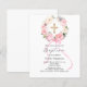 Um fundo branco elegante, decorado com flores rosa e branca em tons de aquarela em uma coroa, um laço rosa e uma cruz dourada. Personalize e adicione um nome e detalhes.