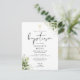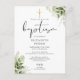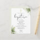Este cartão postal de convite de batismo com folhas de botânica elegantes pode ser personalizado com suas informações em tipografia chic com suas iniciais de monograma no verso. Criado por Thisisnotme©