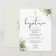 Convite de Batismo de Monograma Chic com Folhagem