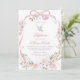 Convite de Batismo de Pombo Coquette com Laço Floral Rosa, Convite de Batismo de Menina Rosa, Convite de Batismo de Cruz de Prata Editável