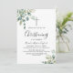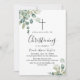 Celebre um marco precioso com este elegante convite de batismo de meados do verão. Com um design botânico exuberante, apresenta belas folhas de eucalipto pintadas à aguarela e folhas verdes viçosas, criando um visual fresco e atemporal perfeito para uma dedicação de bebê de coração.