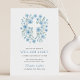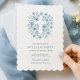 Este convite de batismo elegante com borda rendilhada apresenta uma suave grinalda floral azul em forma de cruz, lindamente acentuada com folhas em aquarela e detalhes delicados. Criado especialmente para bebês meninos, combina o simbolismo cristão clássico com um layout minimalista moderno. Ideal para celebrações religiosas, incluindo batismos, dedicações de bebês e batizados, este cartão atemporal define o tom para um evento significativo. Personalize o texto facilmente com o nome do seu filho, endereço da igreja e informações de RSVP.