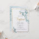 Convite de Batismo PixDezines, com folhagem verde exuberante aquarela e eucalipto; uma cruz dourada falsa, pó de ouro e moldura acentuada com caligrafia de luxo. Todos os elementos são editáveis e removíveis.