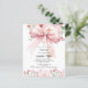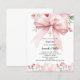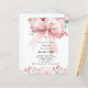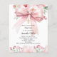 Um fundo branco, decorado com um grande laço rosa e uma cruz dourada e flores rosa. Personalize e adicione um nome e detalhes detalhes.