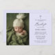 O Convite De Batismo Mexicano Lavanda Foto é uma maneira bonita e simples de celebrar o dia especial do seu filho. Este convite em espanhol apresenta caligrafia elegante e design minimalista, perfeito para meninos e meninas. Ideal para um batismo mexicano, combina tradição com estilo moderno.