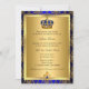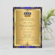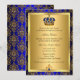 Convite de Batismo azul real & ouro. Coroa de joia régia elegante & damasco dourado. Personalize com seus próprios detalhes. Por favor, note que todas as imagens são planas! elas não têm joias reais!