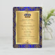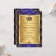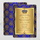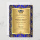 Convite de Batismo azul real e dourado. Coroa de jóia régia elegante e damasco dourado. Personalize com seus próprios detalhes. Por favor, note que todas as imagens são planas! elas não têm jóias reais!