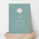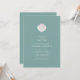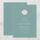 Design elegante de convite de batismo com uma concha rosa e branca pintada à mão em um fundo verde sage que cria um sentimento costeiro atemporal—perfeito para batismos modernos, minimalistas e inspirados no mar. A concha representa um antigo símbolo de batismo usado para derramar a água.