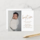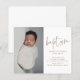 Este convite de batismo de bebê com foto moderna apresenta arte de batismo com letra de caligrafia manuscrita que é móvel e você pode facilmente mudar a cor, uma foto vertical e texto editável. Clique no botão de edição para personalizar este design.