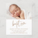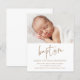 Este convite de batismo de bebê com foto moderna apresenta arte de batismo com caligrafia manuscrita que é móvel e que você pode facilmente mudar a cor, uma foto horizontal e texto editável. Clique no botão editar para personalizar este design.