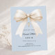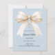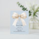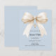 Celebre seu dia especial com este convite de batismo azul elegante em tom desbotado, apresentando um laço de cetim marfim macio e um detalhe delicado de cruz dourada.