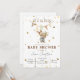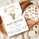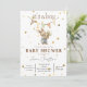 Celebre seu momento especial com este adorável convite de chá de bebê de coelho neutro. Com um coelho em aquarela suave, uma faixa de bandeirolas rústica e tons terrosos quentes, este design é perfeito para um chá de bebê aconchegante e inspirado em boho.