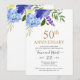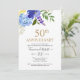 Convite de Aniversário de Bodas de Ouro 50 Anos Casados com Floral Azul Roxo Dourado