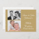 Este convite de aniversário de 50 anos de casamento apresenta um fundo de cor dourada e uma decoração fina como renda nas laterais, bem como duas áreas para as fotos do casal. O verso é branco com uma decoração fina dourada como renda. Está pronto para personalizar e é adequado para um aniversário de casamento de ouro, 50 anos.