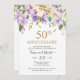 Convite de Aniversário de Bodas de Ouro Floral Roxo Elegante Dourado