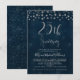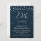 Este convite de bodas de 25 anos apresenta um cabeçalho de caligrafia de prata falsa e alguns pontos decorativos no topo. O fundo é uma imagem texturizada azul escuro. Este convite de bodas de 25 anos com folha de prata falsa está pronto para ser personalizado. O modelo é muito simples de editar.