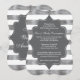 Este convite em forma de suporte com listras na cor branca e prata para aniversário de 25 anos de casamento tem uma forma decorativa de suporte cinza escuro na parte frontal e traseira para conter os detalhes da festa que você deseja compartilhar com seus convidados. Ficaria especialmente elegante no papel com brilho pérola, o que daria um brilho a tudo. O convite é totalmente personalizável. Se você precisar de produtos correspondentes, envie um e-mail para niteowlstudio@gmail.com com sua solicitação.